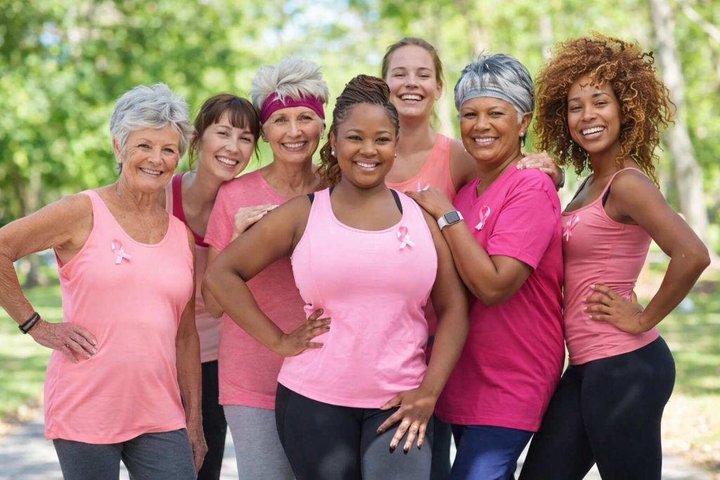 Grupo de mujeres participa en actividad al aire libre para promover la concienciación sobre el cáncer de mama. Foto Getty Images