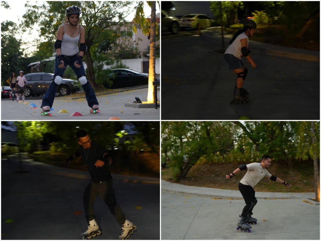 En la plaza de Flor Blanca, cada noche se repite la misma escena. Algunos recién se colocan los patines por primera vez. Otros ya dominan giros, derrapes y frenadas más técnicas.